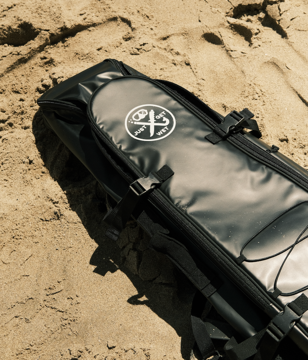 Welcome to the shore divers ultimate bag. When it comes to transporting your freediving gear, it can always be a hassle, especially when you're trying to figure out the best way to pack your long freediving fins. Long fins won't fit in most checked bags without having to bend them drastically. Most bags that are long enough to transport your fins are duffle bags and a hassle to carry. Now you can store everything you need, including two spearguns, easily on your back so you can get out and reach those difficult spots. Great for difficult hikes to dive sites, and also great for long distance dive travel.